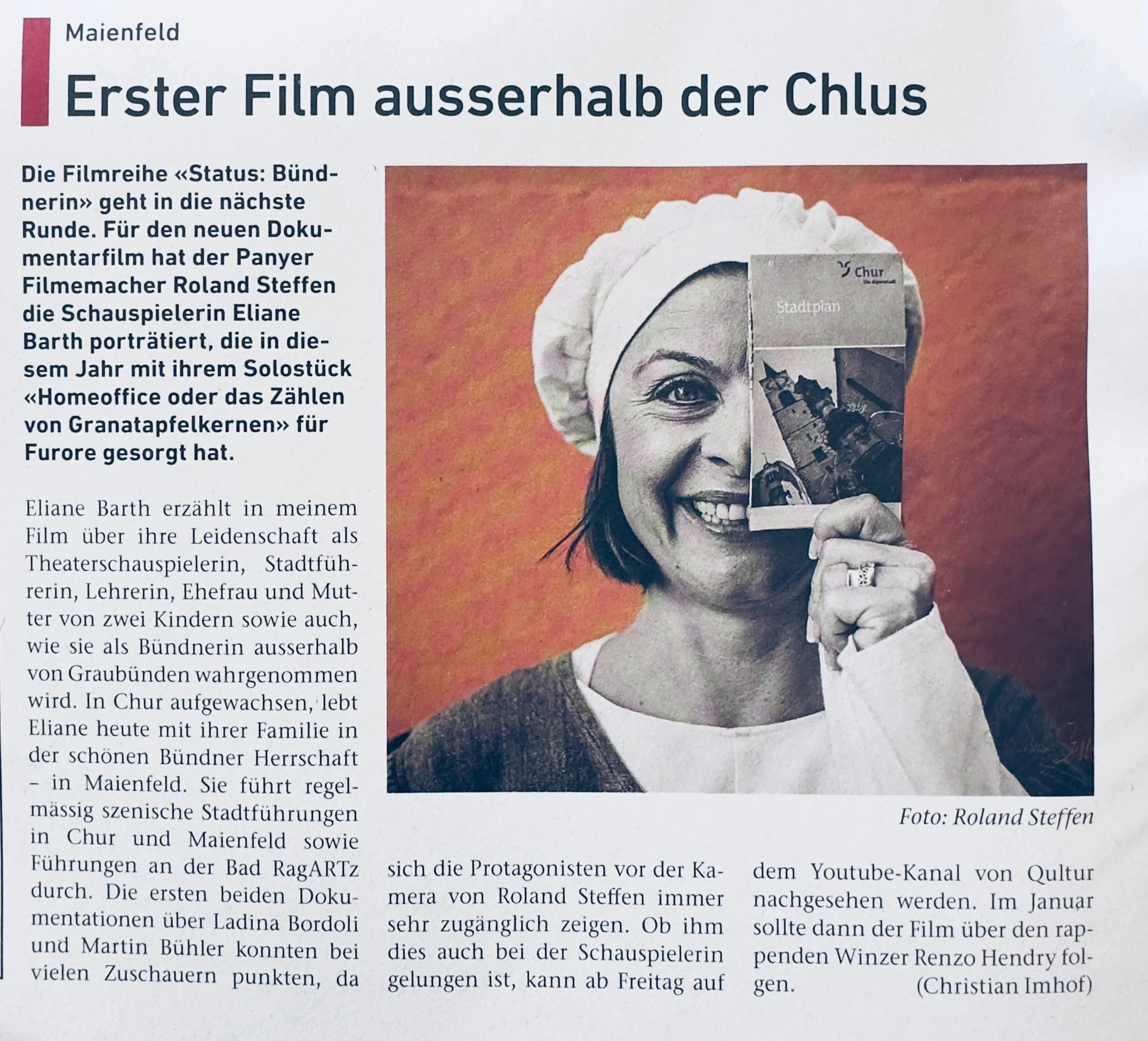 Eliane Barth erzählt mir in meinem neuen Film über ihre Leidenschaft als Theater Schauspielerin, Stadtführerin, Lehrerin, Ehefrau und Mutter von zwei Kindern und wie Sie als Bündnerin ausserhalb von Graubünden wahrgenommen wird.