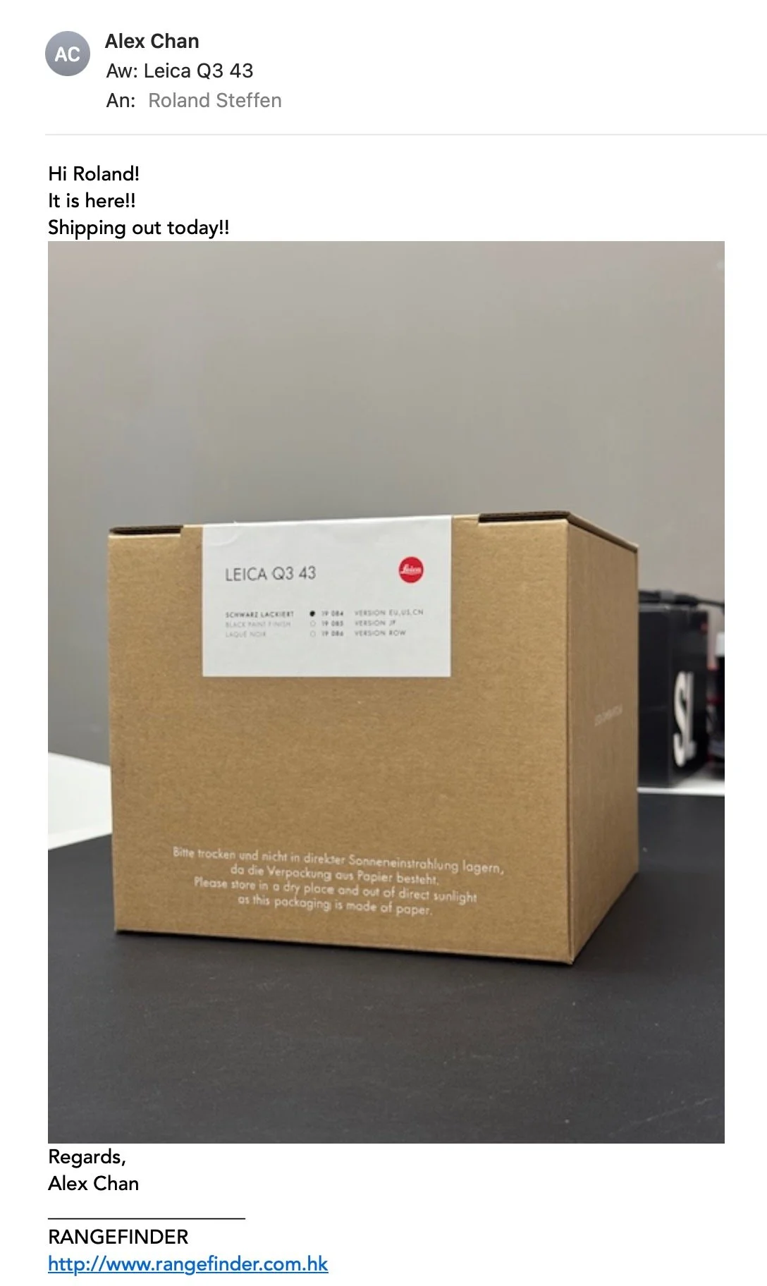 Update, 1.10.2024: Leica Q3 43 arrived from Hong Kong today!