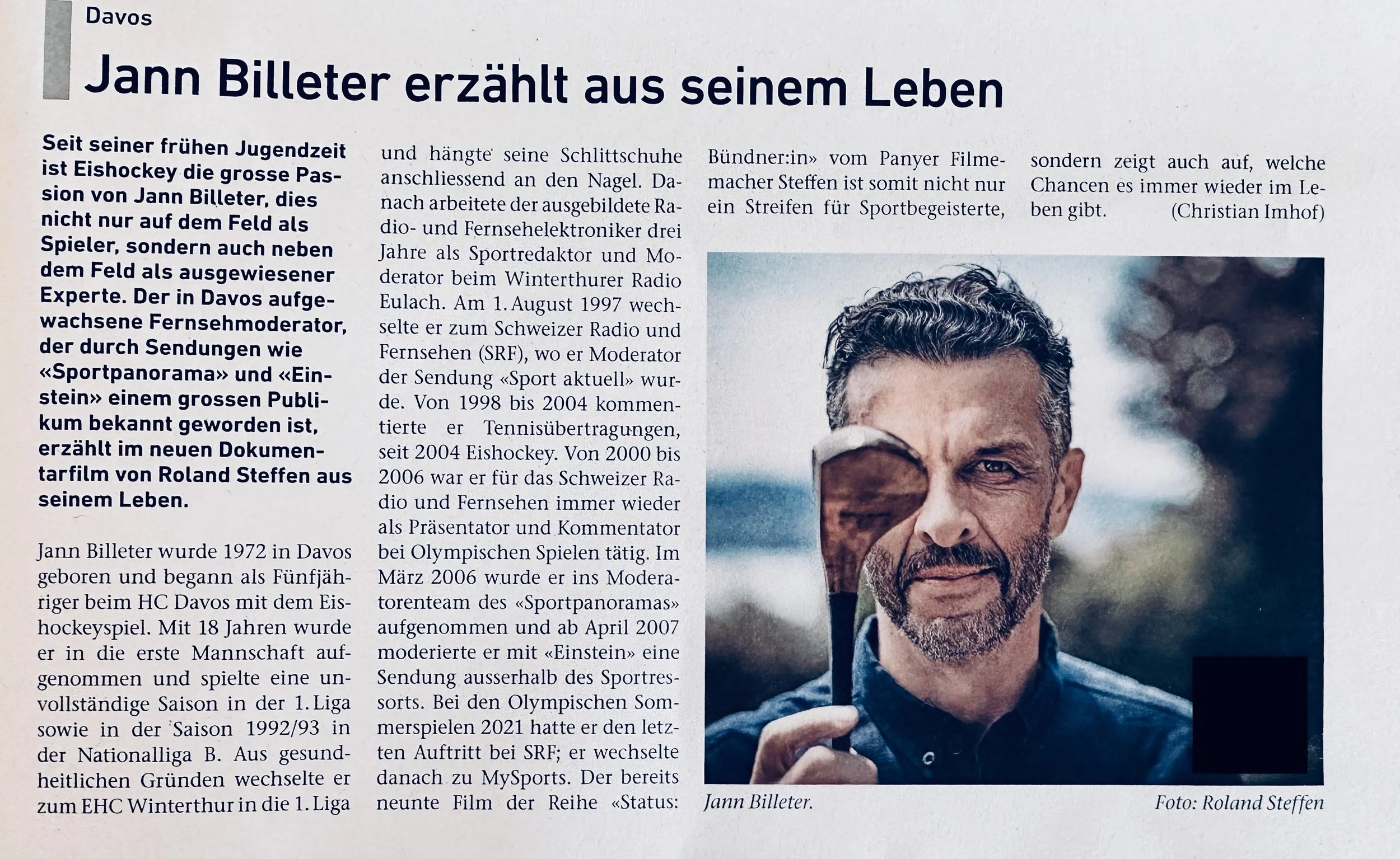 Seit seiner frühen Jugendzeit ist Eishockey seine Leidenschaft. Weshalb aber Golf und insbesondere sein Hickory Golf Schläger eine besondere Rolle in seiner Freizeit spielt, erzählt mir der TV Host Moderator & Kommentator bei MySports.ch Jann Billeter in meiner neusten „Status: Bündner!“ Doku. Obwohl Jann seit über dreissig Jahren im Unterland wohnt, ist seine Verbundenheit zu Graubünden und insbesondere zu Davos immer noch sehr stark. Ich begleite Jann filmisch an seinen Wirkungsorten in Rapperswil-Jona, Erlenbach und natürlich in Davos, wo er seine Kindheit verbracht hat und seine Begeisterung zum “Hockay” und dem HCD bereits in der frühen Jugendzeit entstand.