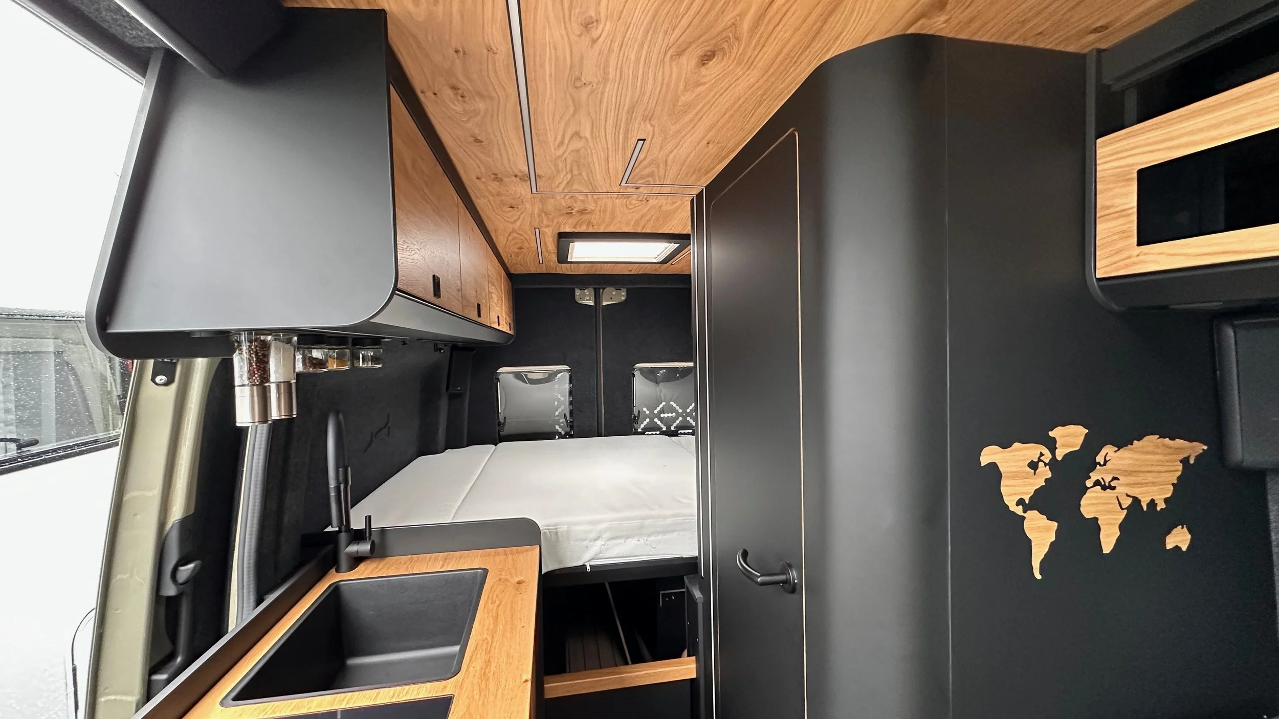 Die Firma Volklandt GmbH in der Rhön, baut seit einigen Jahren eigene Vans und Expeditionsmodelle auf Basis von Vokswagen und Mercedes Sprinter unter dem eigenen Brand Rhön Camp. Wir haben vorgängig 4 x 4 Sprinter Vans von verschiedenen Herstellern evaluiert, unter anderem auch von HRZ, Monstervan, etc. haben dann aber den neuen “The Specter” von Rhön Camp auf YouTube gesehen. Der auf 15 Stück limitierte Super-Offroad-Van hat uns schon sehr gefallen. Als wir ihn dann vor Ort besichtigten waren wir dann schon etwas ernüchtert wegen dem Platzangebot im Inneren des Van’s - aber 5.98 Meter Länge geben einfach nicht mehr her. Das war uns schon vorher bewusst - vor allem wenn man von einem sieben Meter Fahrzeug mit grosser Garage verwöhnt ist.
