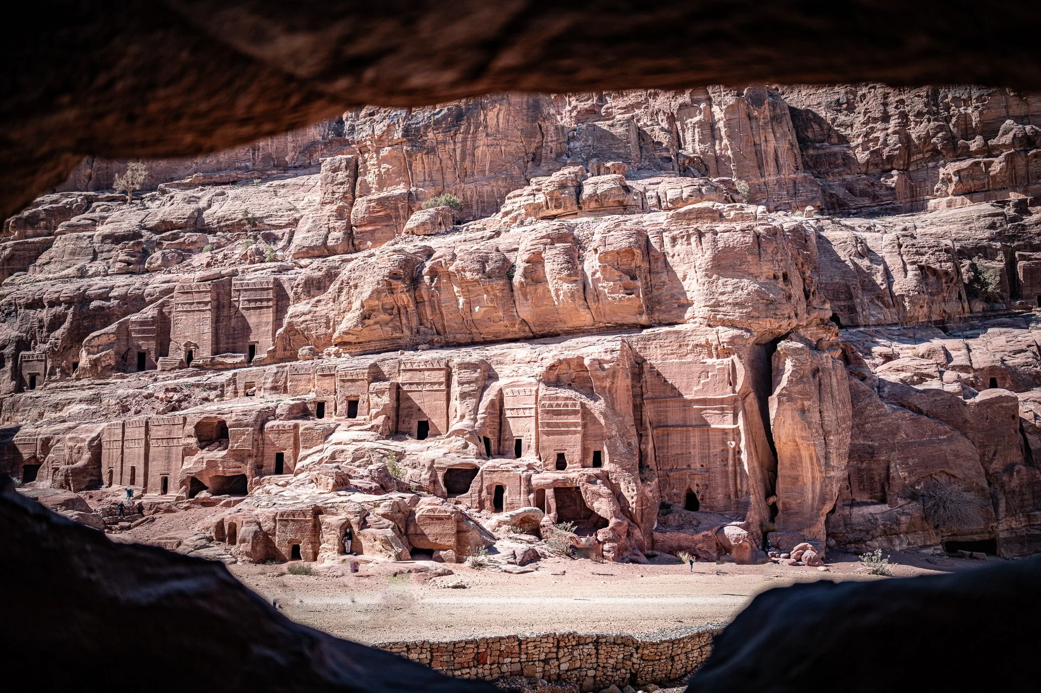 Petra, Jordan, is an ancient Nabataean city carved into rose-red sandstone cliffs, flourishing from the 4th century BC as a major trade hub before being abandoned following earthquakes and shifting trade routes. Renowned for its water management and rock-cut architecture like Al-Khazneh (The Treasury), it was lost to the Western world until 1812.